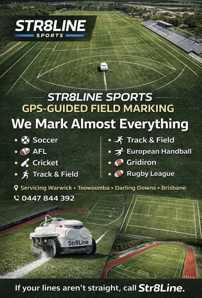 STR8LINE SPORTS delivers professional GPS-guided sports field line marking for schools, sporting clubs, and community facilities.